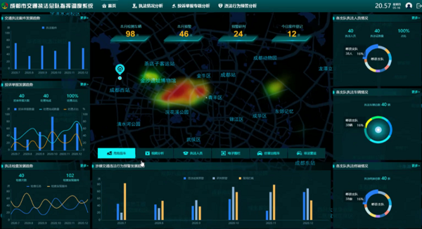 成都市交通运输行政执法总队在综合执法改革的推动下成立,负责成都市及相关区县的公路路政、道路运政、水路运政、航道行政、港口行政、地方海事行政、城市轨道交通运营、工程质量监督管理等行政处罚以及与行政处罚相关的行政检查、行政强制及投诉处理等工作。执法总队的执法范围大、监管范围广、执法人员有限,难以实现执法范围全覆盖,稽查人员全天候全时段监管,急需以信息化的手段辅助执法,保障运输行业秩序。