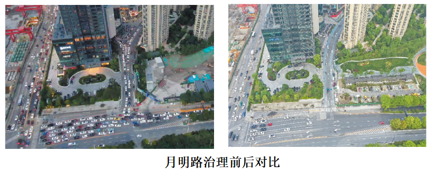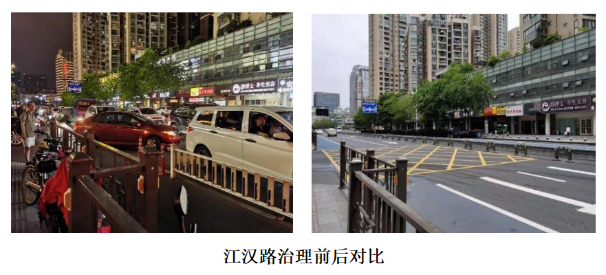 从商圈周边交通存在的实际问题出发,采用“1+X”治理方法,通过数据分析明确客流需求分布,抓住商业交通高峰虹吸的“1”这个主要矛盾,采用优化交通组织、动静态交通协同、构建网约车上下客系统、建立人性服务体系等“X”项措施,开展数治引领下的商圈五化治理,即序化、美化、绿化、人性化、商业化,实现从交通拥堵治理到空间环境提升的拓展。