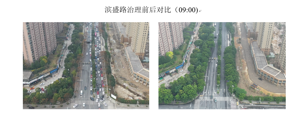 3、滨盛-儿康路口高峰拥堵指数由7.68降至3.52(下降54.2%);