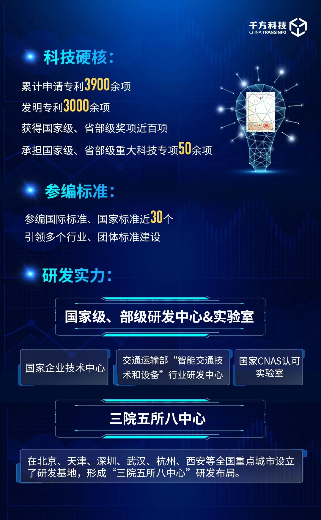 专注交通行业20余年,千方科技不断提升自身数字化发展水平,积极履行社会责任,在智慧交通、智能物联等关键领域取得了多项技术突破和创新成果。