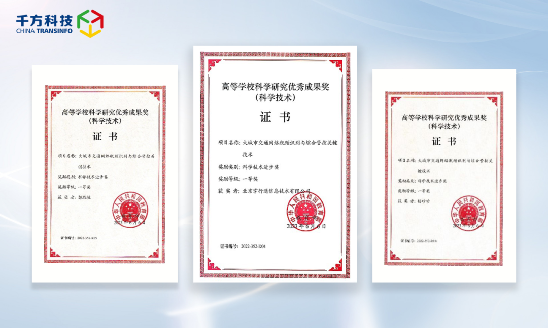 由千方科技联合北京交通大学、北京市智慧交通发展中心等单位和专家共同完成的《大城市交通网络瓶颈识别与综合管控关键技术》科研项目荣获科学技术进步奖一等奖。