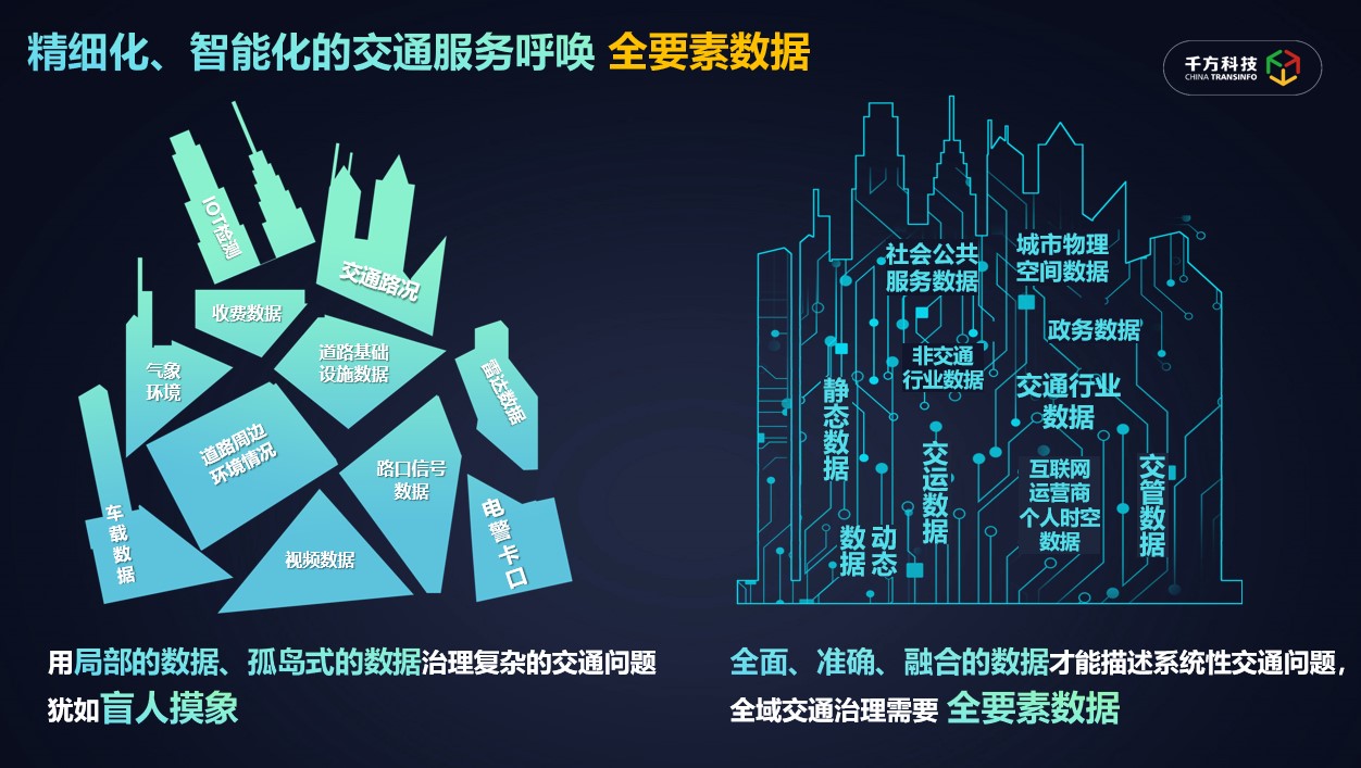 潘璠强调,应用局部数据、孤岛式数据来治理复杂的交通问题犹如盲人摸象, 只有全面、准确、融合的全要素数据才能描述复杂、系统性的交通问题,应对解决全域交通治理难题。这对于当前亟待破局的自动驾驶产业更显迫切,实现完全自动驾驶需要“聪明的车+智慧的路”高效协同,极大程度依赖于车端和路侧感知的全要素、全量数据。