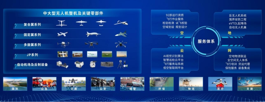 以低空飞行业务为核心,提供覆盖空域规划、试飞校验、定制化飞行作业等服务的行业解决方案。