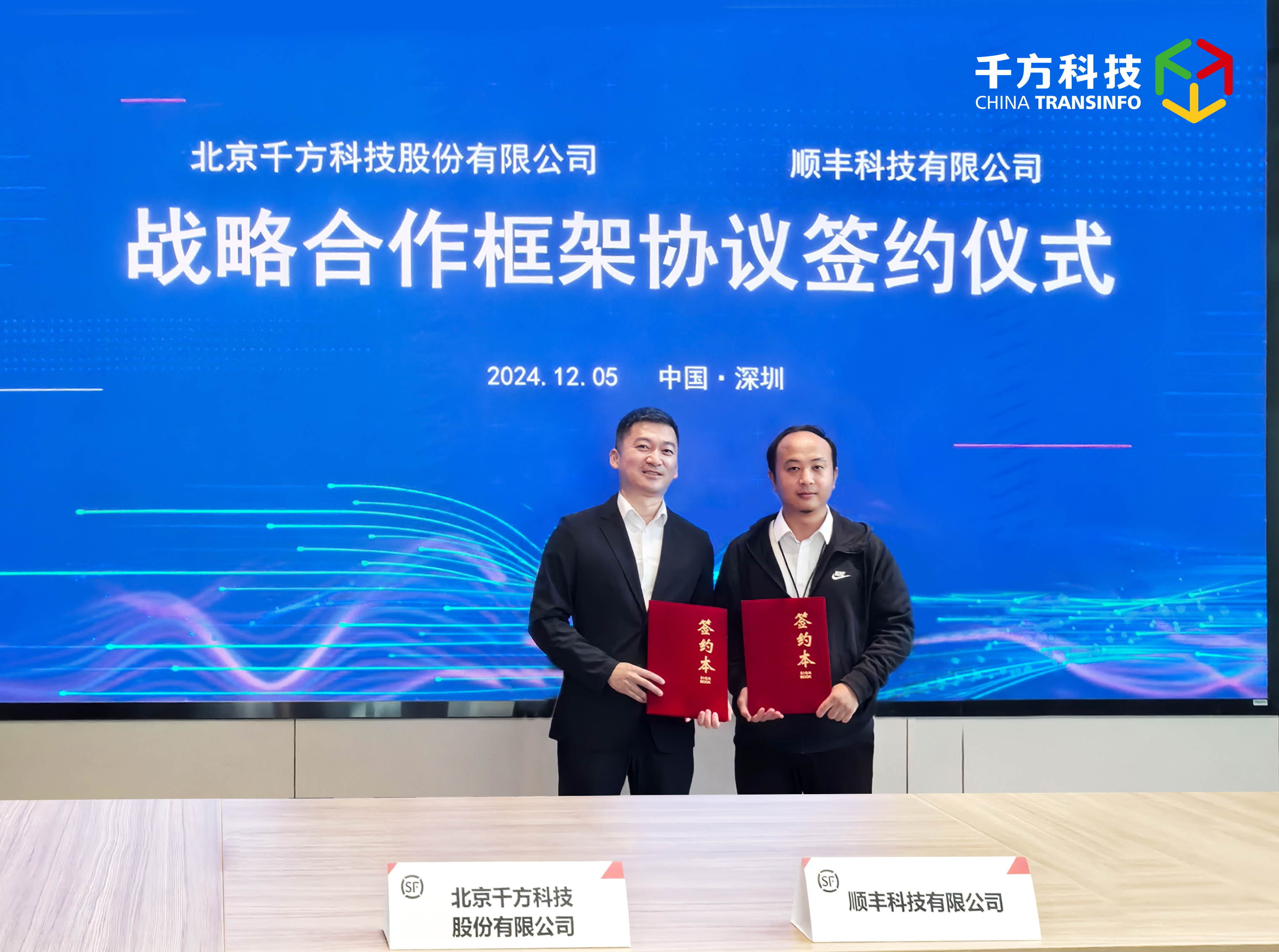 近日,北京千方科技股份有限公司(以下简称“千方科技”)与顺丰科技有限公司(以下简称“顺丰科技”)签署战略协议,双方将积极发挥各自优势,重点开拓低空基础设施建设等核心业务领域,联合打造物流配送、道路巡检、电力巡线、应急救援等多元化运营场景,助力区域低空经济发展。