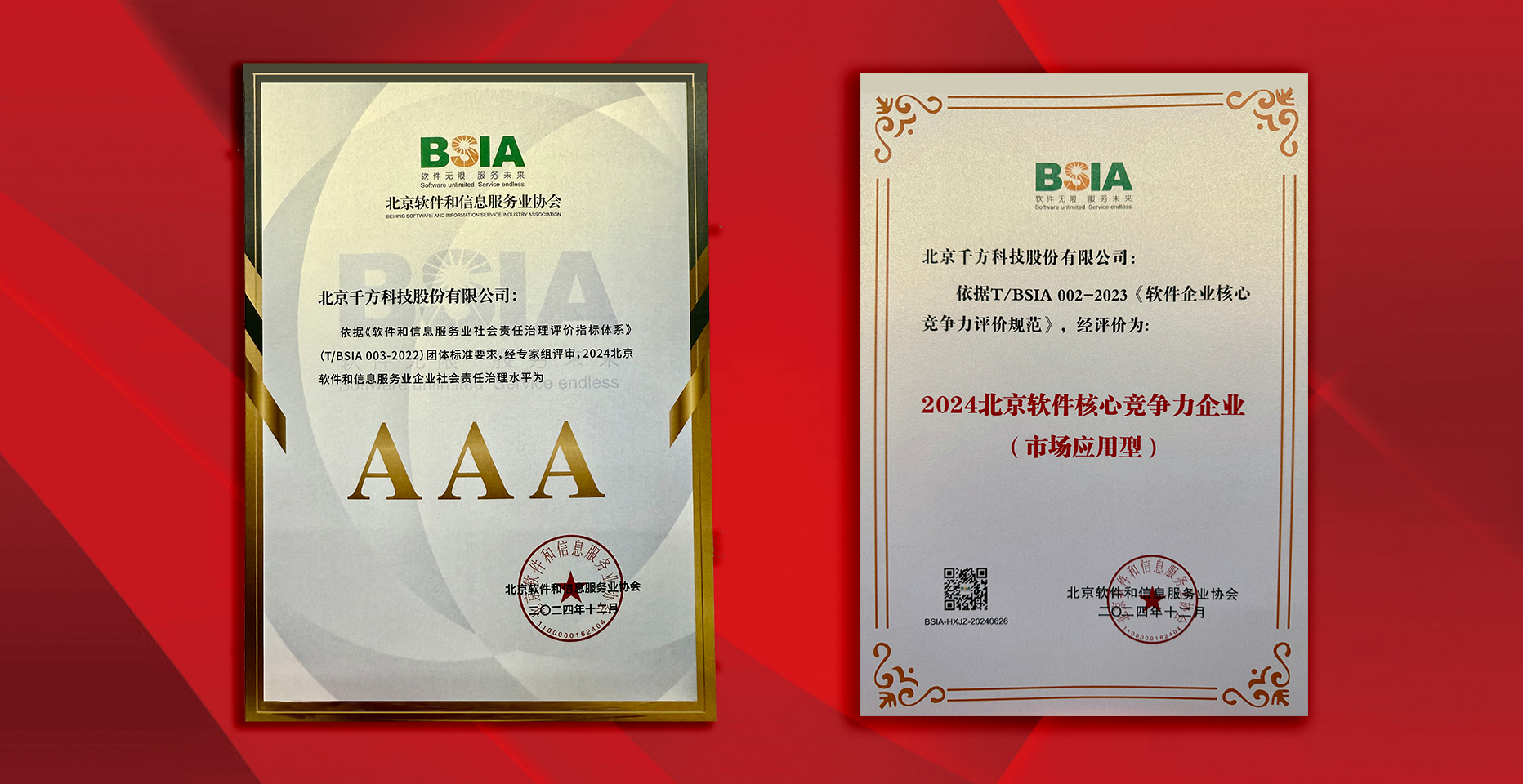 会上,北京软协同时发布了多项单项评价结果。在《2024北京软件和信息服务业企业社会责任治理水平评价结果》中,千方科技被评为最高等级的“AAA引领水平”;在《2024北京软件企业核心竞争力评价报告》中,千方科技在“市场应用型”企业中名列前茅。