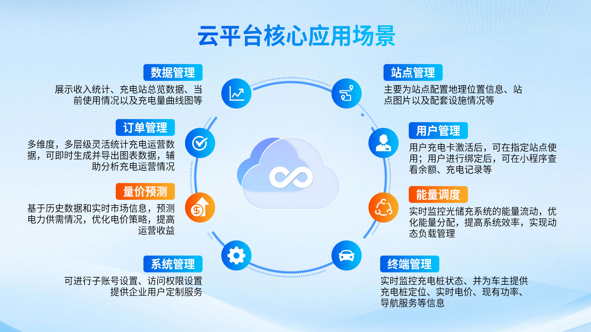 基于在智慧停车领域多年的服务经验和强大的生态整合能力,千方科技推出光储充一体化充电站。面向城市充电站、高速公路服务区、工业园区等应用场景,通过融合可再生能源、电网调度、智能储能和快速充电技术,构建“光伏+储能+充电”微电网系统,借助智能云储充平台实现实时监控并优化能源分配。
