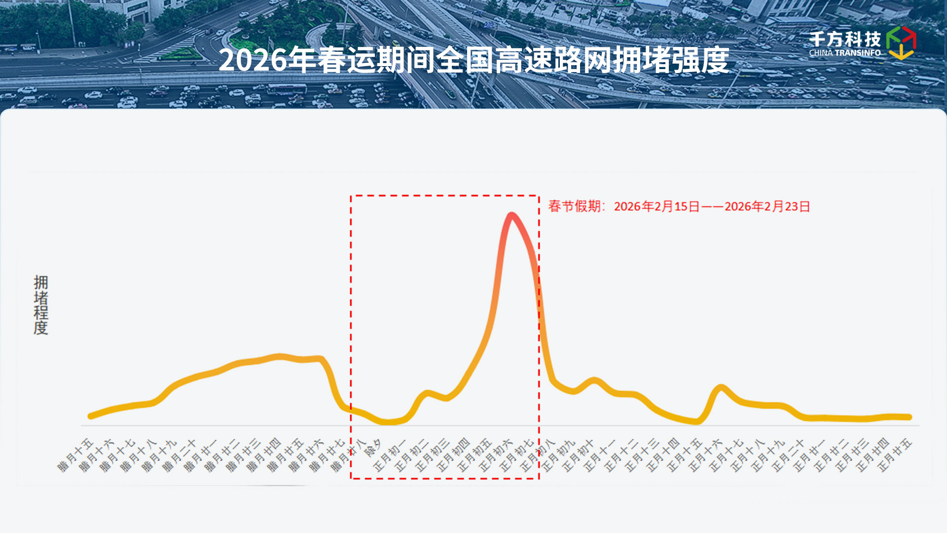 2026年春运已开启。近日,千方科技发布《2026年春运及春节全国高速公路网出行研判报告》(以下简称“《报告》”),为路网管理提供科学参考依据;同时,可助力出行者提前规划线路,避开易拥堵节点,提升通行效率。